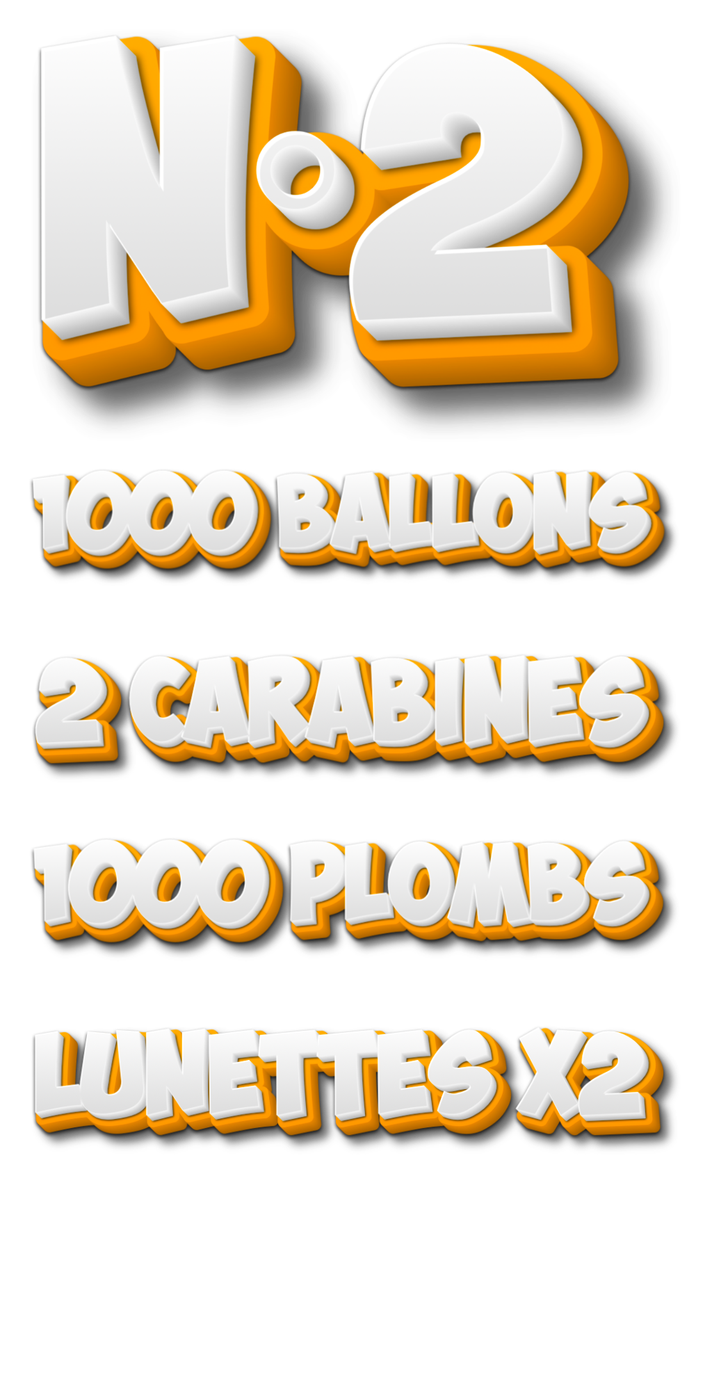 Livré avec 2 carabines à plomb, vous devrez viser et abattre les ballons qui volent. Ce jeu de tir à la carabine est fourni avec la table de support , sa décoration, et un gonfleur.